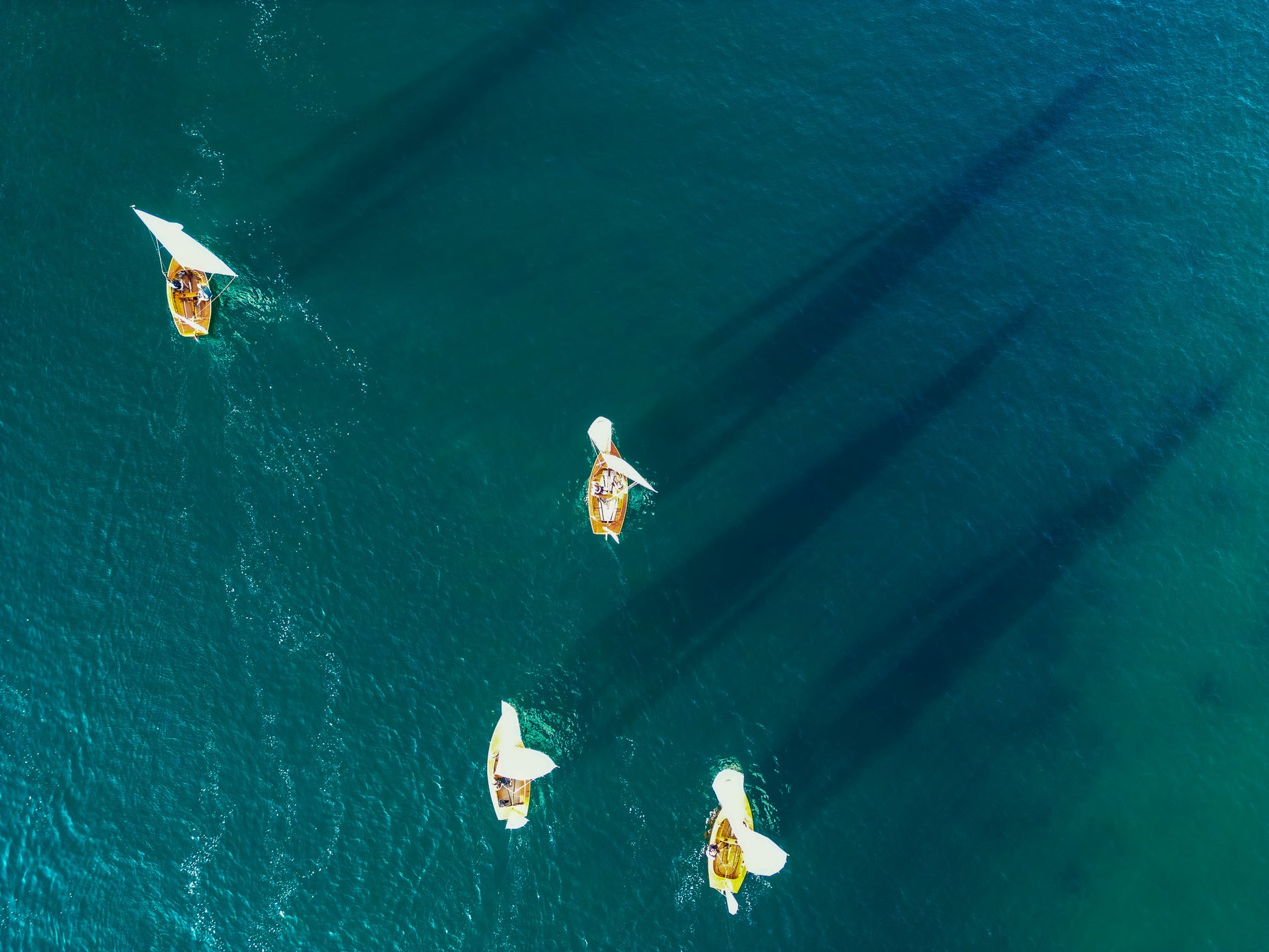 The composition exudes a sense of tranquillity and adventure, as the sails catch the golden sunlight, creating a play of shadows that adds depth and drama to the scene. The tactile positioning of the Salcombe Yawl's forms a visual symphony, highlighting the harmony between nature and human activity.