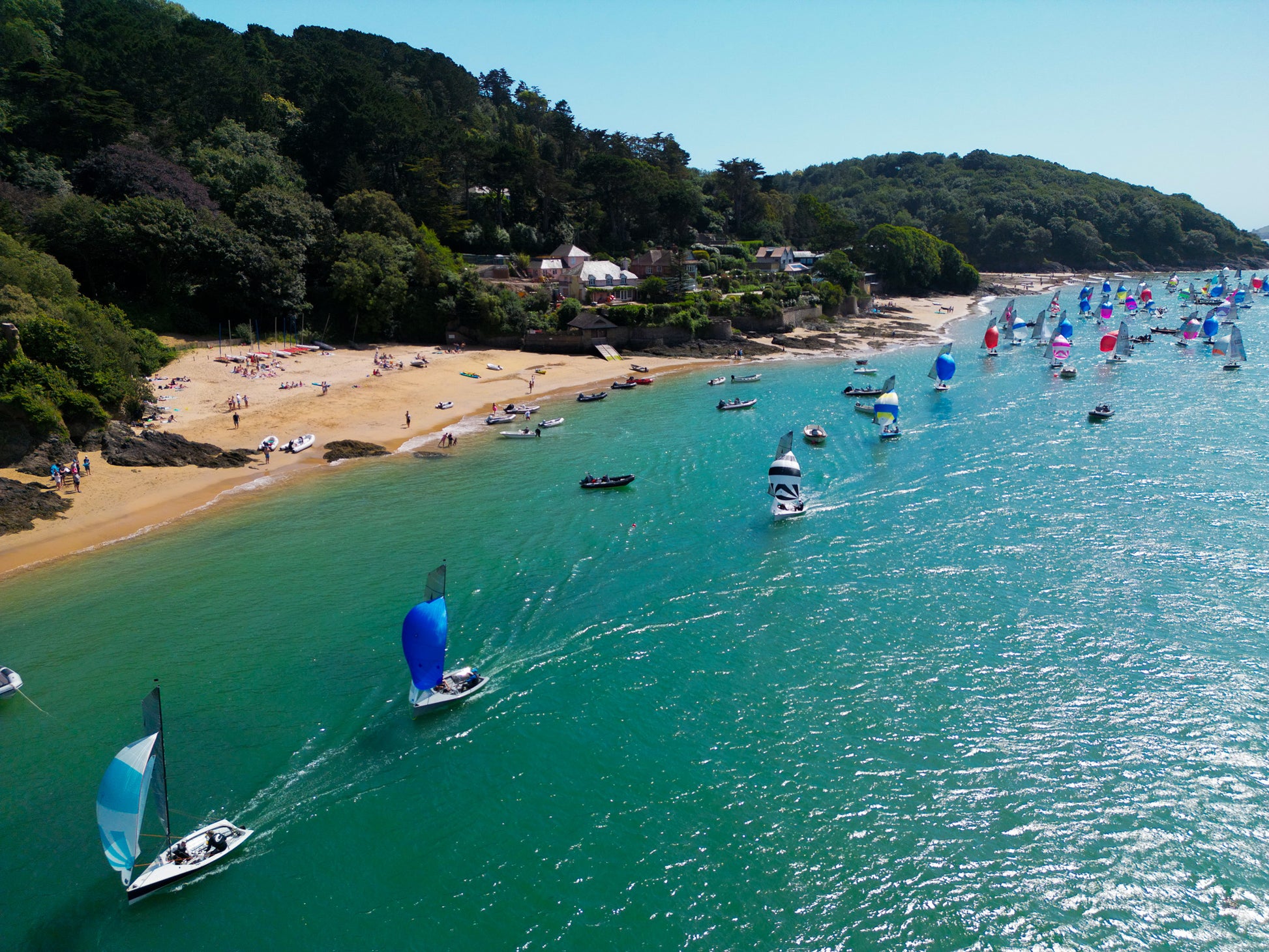 Merlin Rockets by Smalls Beach during Merlin Rocket Week 2023.