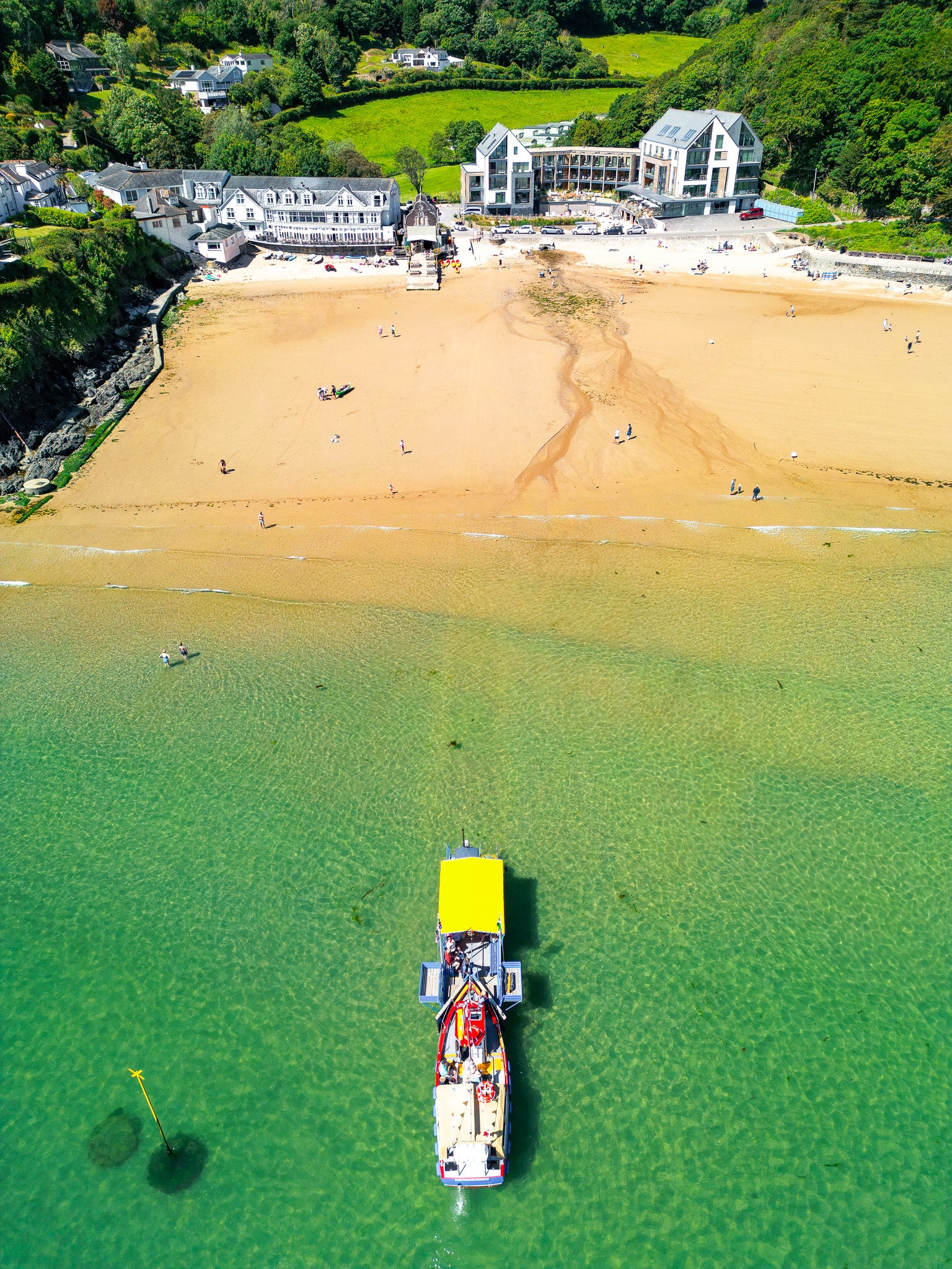 South Sands in all its summer splendour with the South Sands Ferry doing a pickup before heading to Salcombe.